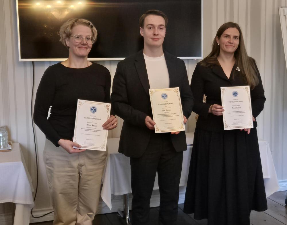 Tutkimusapuraha 6000 € päätettiin tänä vuonna jakaa kolmen hakijan kesken (kuvassa vasemmalta oikealle):