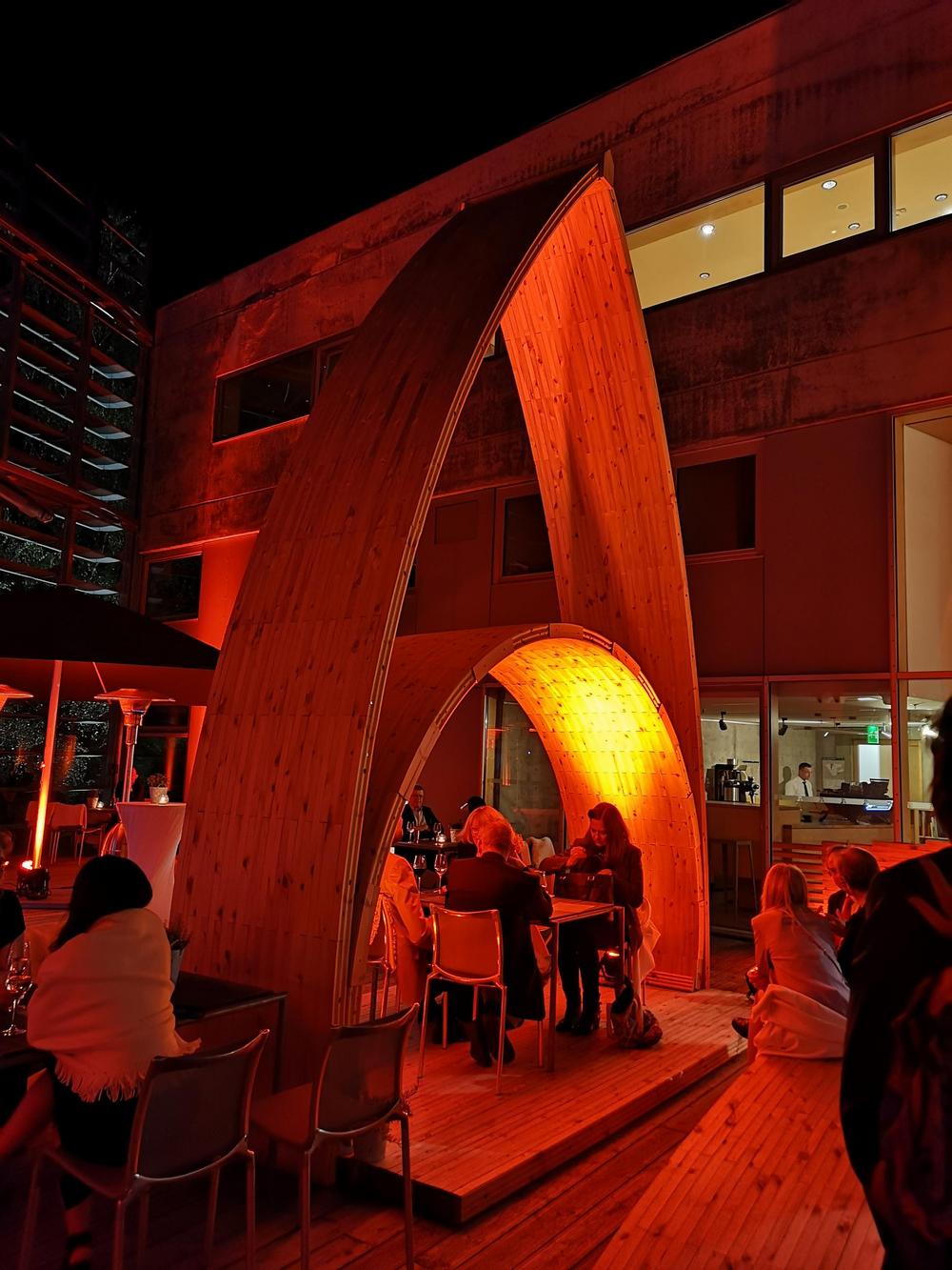 Iltatilaisuus järjestettiin Pohjoismaiden suurlähetystössä, jossa saimme nauttia vanhempien tutkijoiden esityksistä ja väittelystä. Illan päätteeksi professori Palomäki esitti itse säveltämänsä ja sanoittamansa laulun sekä suomeksi että saksaksi!
